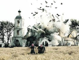 Теперь рассмотрим, как показаны чудеса. Первое чудо, когда Надя со священником плывут по морю на мине, и их обстреливает самолет. Отец Александр читает 90й псалом и пули пролетают мимо, а самолет разбивается. Безусловно, это христианское чудо. Зато другое чудо весьма странное: шальная бомба падает не куда-нибудь в чистое поле, а точно на храм. Храм разлетается вдребезги, среди развалин стоит целая и невредимая икона Божьей матери. Символика очевидна – храм не нужен, нужна чудотворная икона. Котов и пленный немец радуются, что они успели выбежать и не более того. Настоящее христианское чудо было бы противоположным: во время интенсивной бомбежки герои спрятались в храме, от страха стали молиться, и в результате все вокруг перепахано взрывами, в храм цел и невредим. Такие случаи на войне были. Например, неоднократно немцы пытались разбомбить Пюхтицкий женский монастырь, но по молитвам монахинь ни одна бомба не взорвалась на территории обители. Настоящее чудо совершается не ради необычного зрелища, а по вере во Христа.